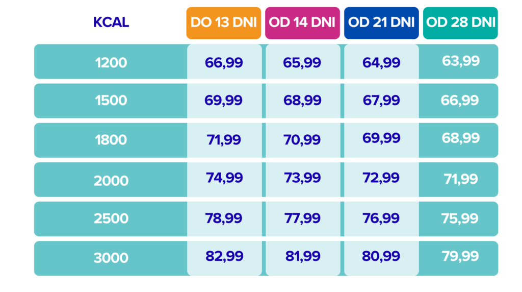 - 1200 kcal – dla redukcji i lekkiego trybu życia